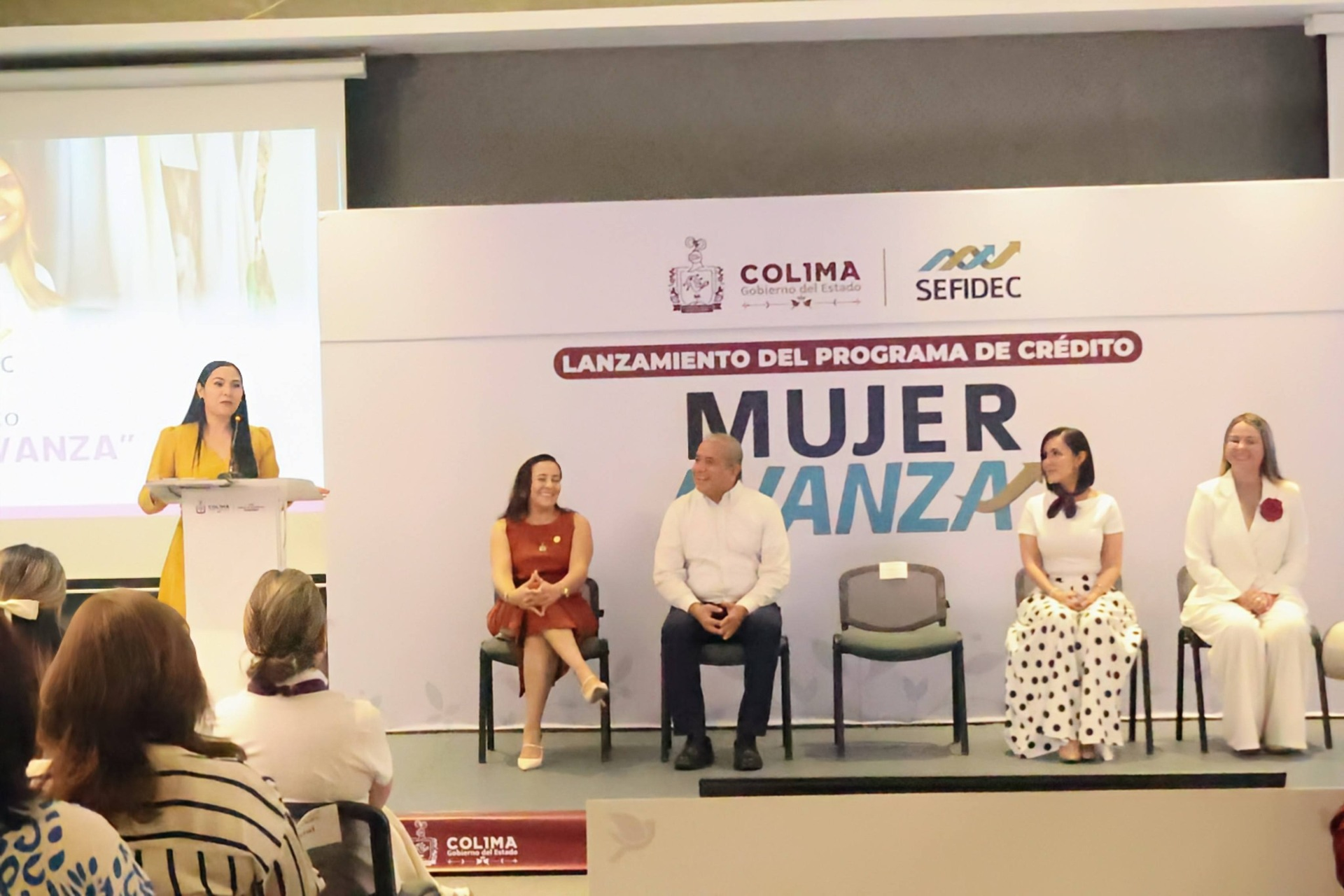 Nuestra presidenta, Gabriela Gómez Brun, asistió junto con mujeres empresarias afiliadas a CANACO SERVYTUR Colima en la presentación del programa de financiamiento “Mujer Avanza”, iniciativa impulsada por el Gobierno Colima través de SEFIDEC, orientada a fortalecer el crecimiento y desarrollo de los negocios liderados por mujeres en la entidad.